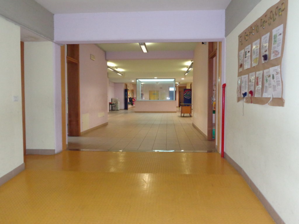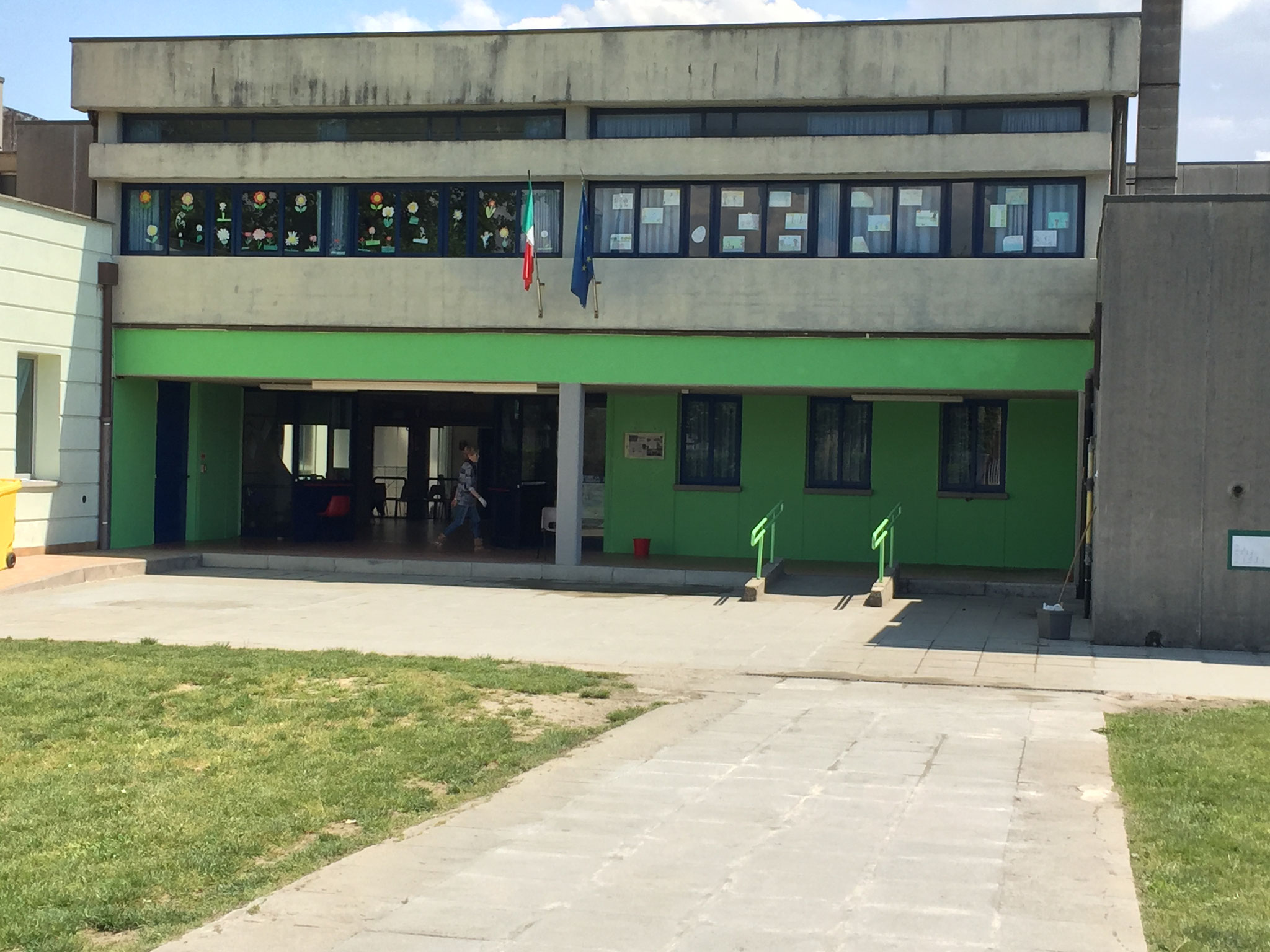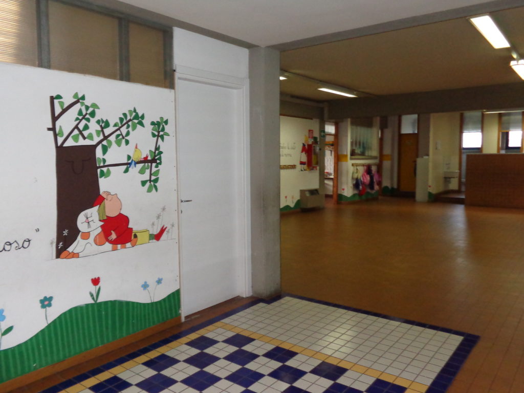La struttura scolastica è disposta su due piani, condivide l’ampio giardino con l’attigua scuola dell’infanzia che occupa la gran parte del piano terra.